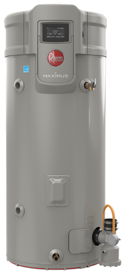 Embalado com inovações como um trocador de calor de bobina helicoidal que fornece Eficiência térmica máxima enquanto estende a vida do tanque e um patenteado neutralizador de condensado embutido, a linha Rheem Maximus se destaca para ambos eficiência e sua capacidade de produzir até 2,5x a água quente de um padrão tanque.